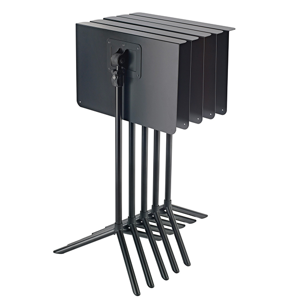 Hauteur 760mm à 1300mm Angle 0° à 90°. Housse individuelle 11450B en option. Chariot de transport pour 12 pupitres 11935B en option. Housse pour 12 pupitre sur chariot 11937B en option.