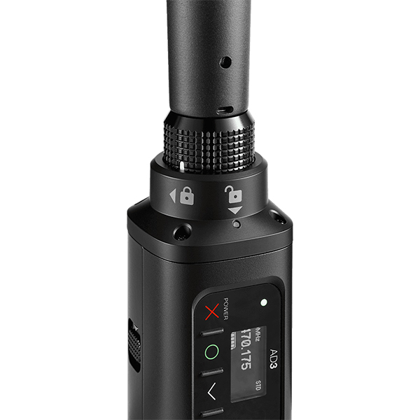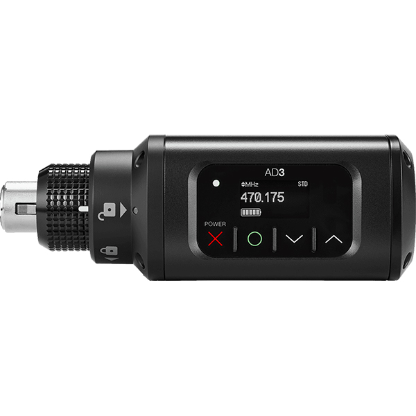 L’émetteur plug-on AD3, compagnon idéal pour la prise de son cinéma ou télévision, offre une qualité audio d’excellence et, grâce à sa transmission numérique robuste et ultra large bande, garantit des performances HF sans soucis. Acceptant aussi bien des microphones dynamiques que statiques, son connecteur sécurisé à verrouillage garantit des captations fiables en toute circonstance. Il permet également d’effectuer des liaisons point à point couplé aux récepteurs AD4. Il est muni d’un afficheur OLED très lisible permettant un accès aisé aux différents menus et réglages. Il s’alimente soit par deux piles LR6 soit par un accu Lithium-Ion Shure SB900A optionnel.