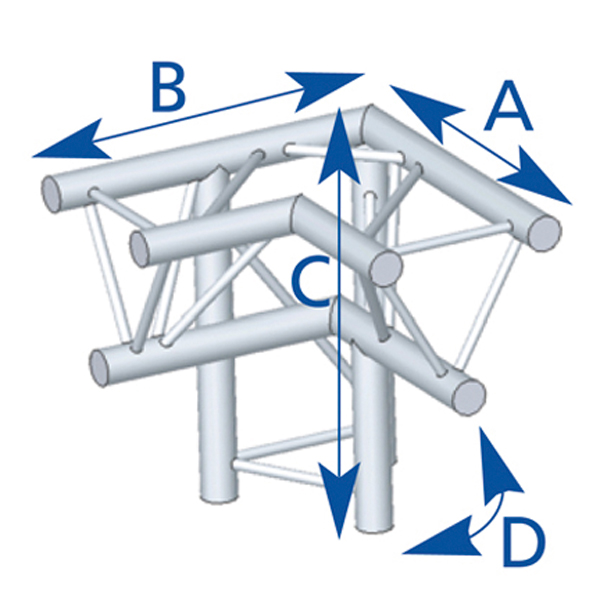 Angle 3 départs, 3D, pied gauche, pour série SX290, couleur ALU ASD