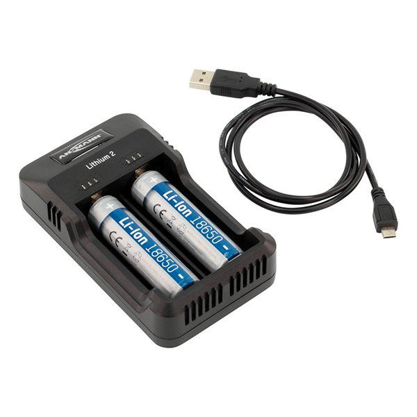 Gestion individuelle des accus. Chargeur pour 1-2 batteries Li-Ion rechargeables (3.6V/3.7V) 26650, 22650, 18650, 18500, 17670, 16340, 14500 etc. ou 1-2 batteries NiMH rechargeables (1.2V) AA / AAA.