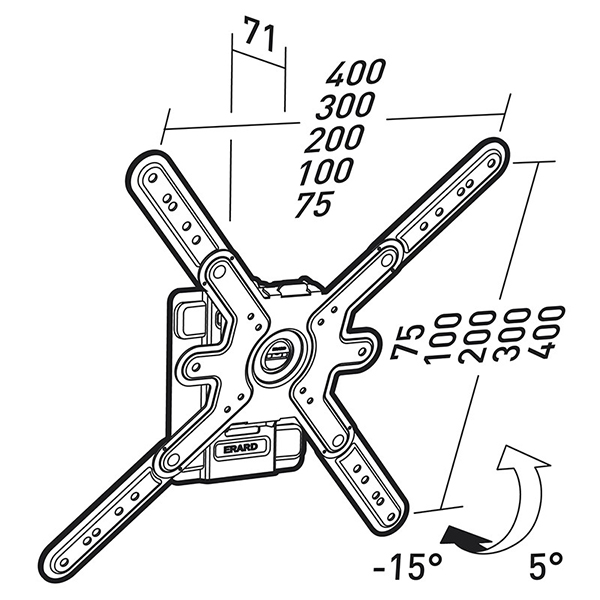 Compatible VESA 300x300, 400x400 Inclinable à +5/-15° - Charge max. : 30kg