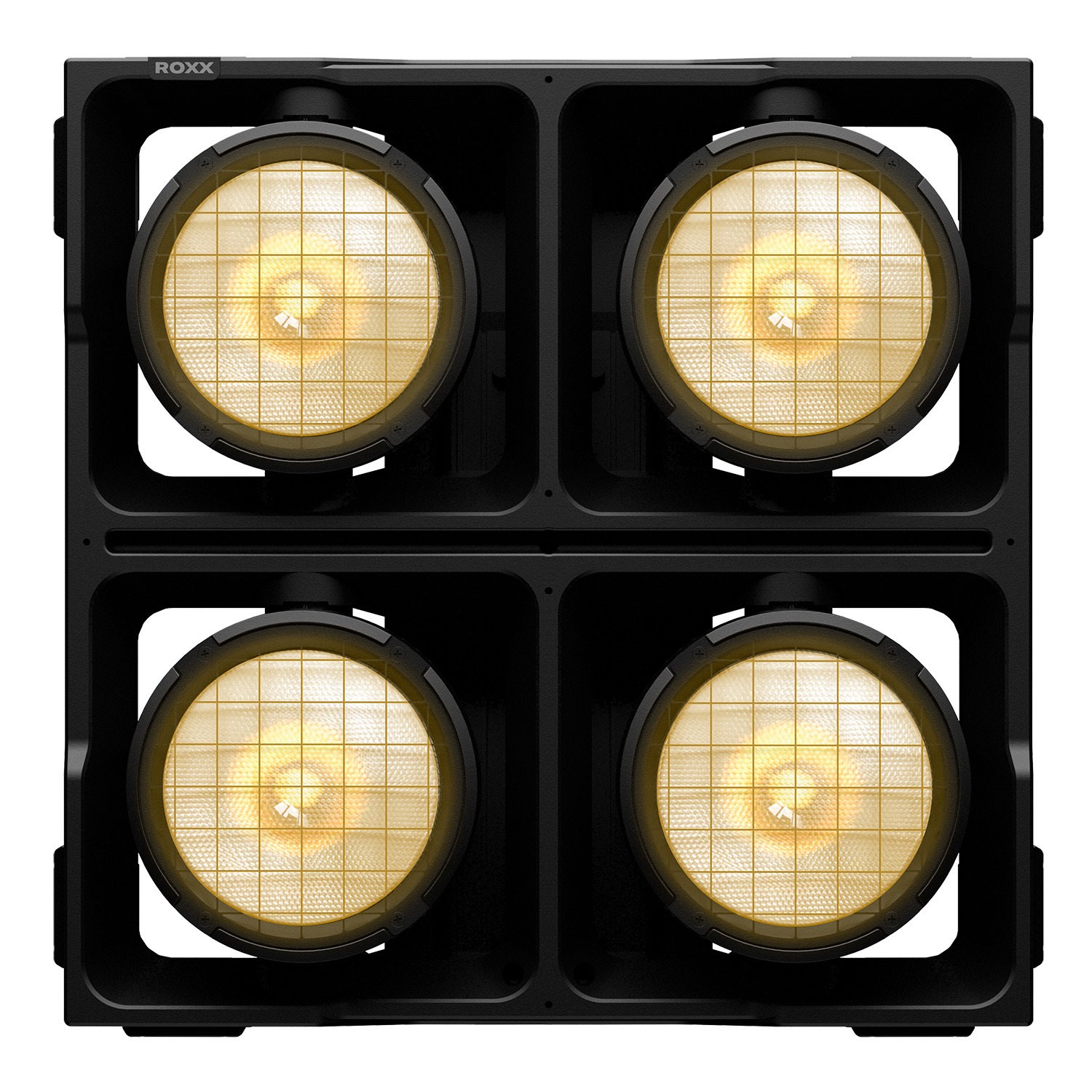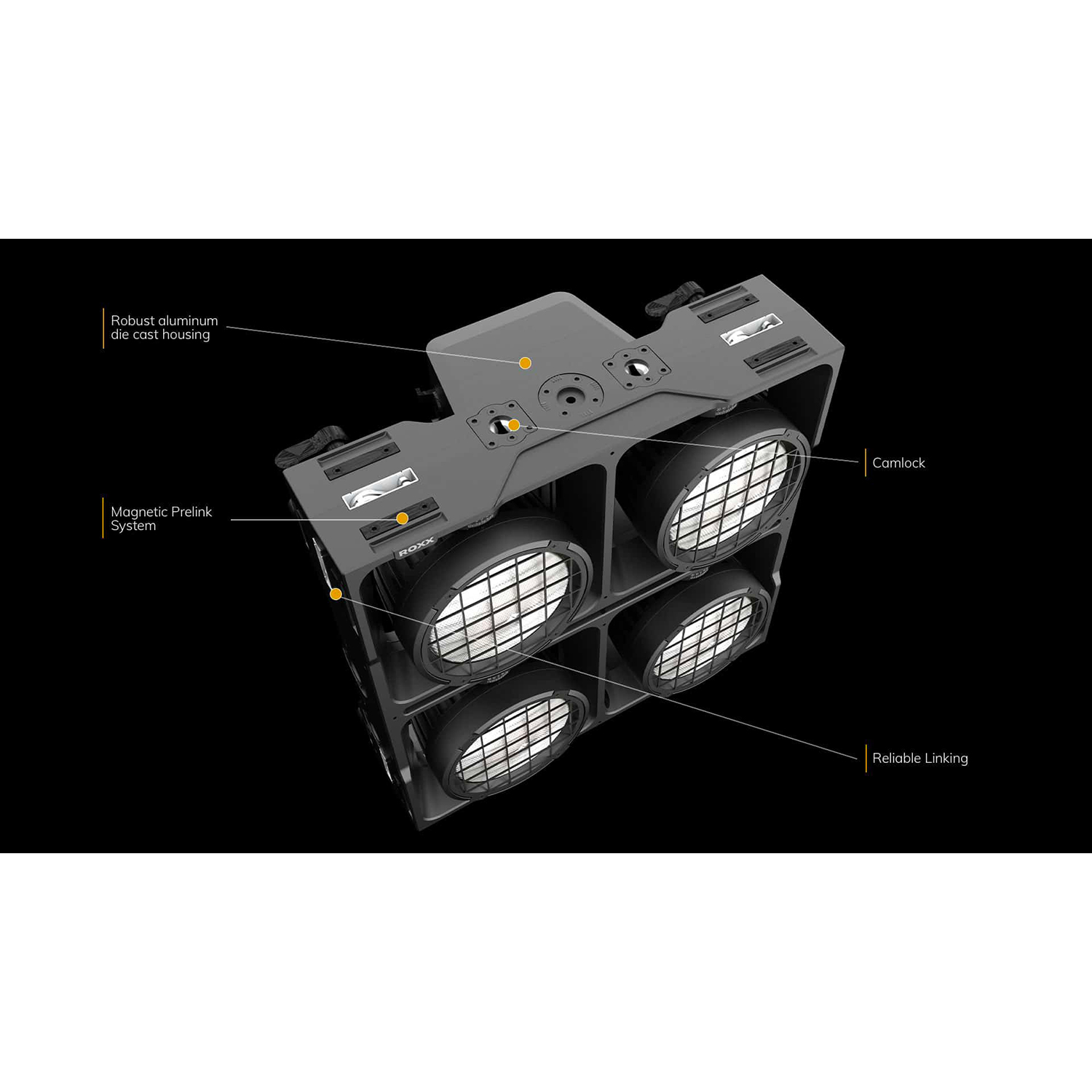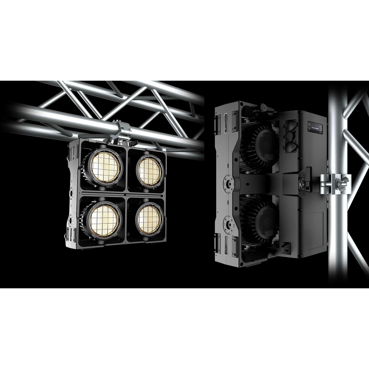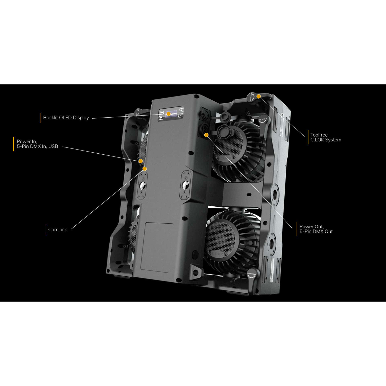 Leds blanc chaud + ambre + rouge Flux lumineux continu : 34000 lumens. Angle d'ouverture : 50°. Multiples systèmes d'accroche : camlock, M12, spigot + système magnétique permettant l'assemblage en tout facilité. Yoke 4.2 incluse.