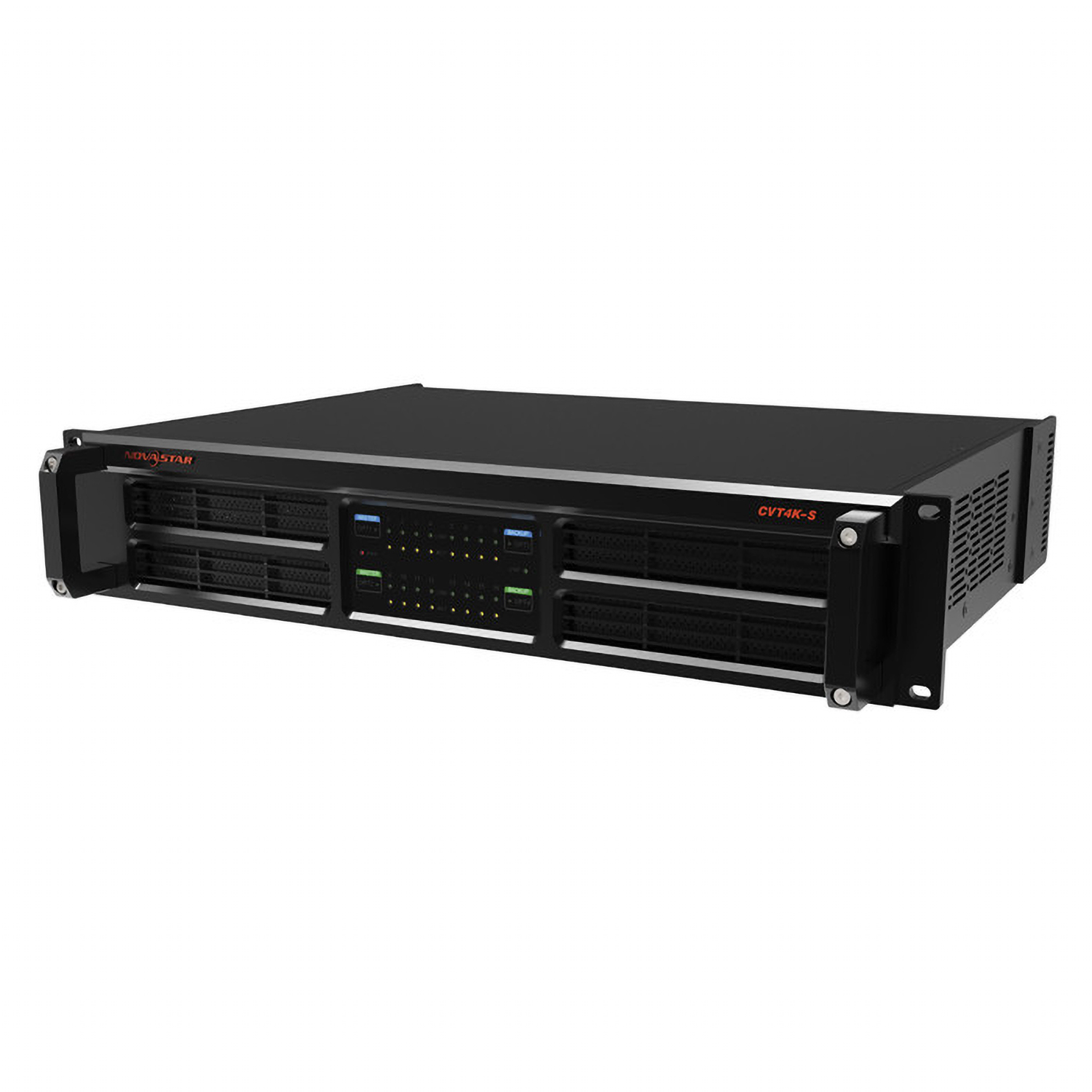 Le CVT4K est un convertisseur de fibres haute performance qui peut être utilisé avec le contrôleur MCTRL4K (101652) / UHD jr.(101633) / UHD(101634). Le CVT4K-S gère la transmission de signaux de 16 liaisons Ethernet par câble à fibre optique et permet la transmission de signaux longue distance jusqu’à 10 km qui demeurent stables et sont difficiles à brouiller. Les modules SFP requis dotés de l’interface LC sont inclus. Chaque sortie possède un indicateur sur le tableau avant qui vous permet de vérifier instantanément si toutes les sorties transmettent des données. Le CVT4K-S dispose non seulement d’une alimentation interne redondante, mais aussi de ports optiques redondants assurant une fiabilité maximale lors de chaque spectacle ou événement.