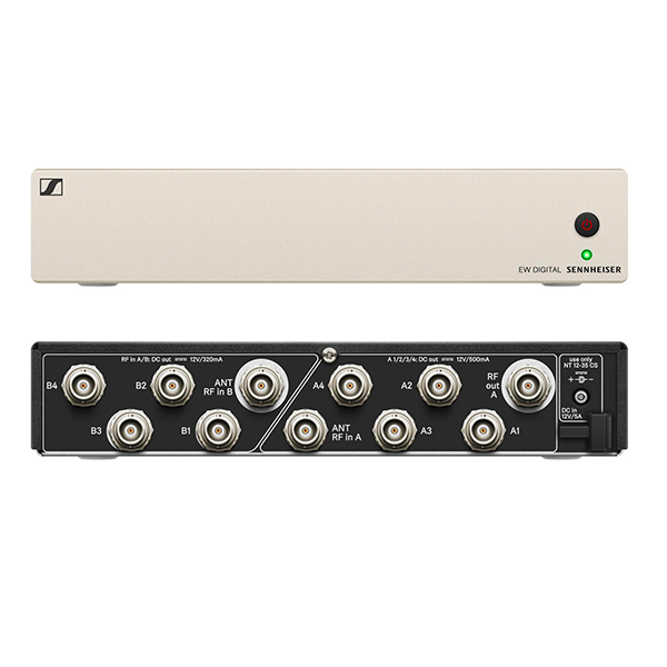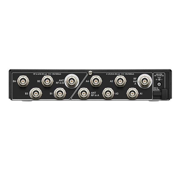 Splitter d'antennes actif (double 1:4) avec distribution électrique CC pour les récepteurs EW-D et G4. Comprend (1) alimentation NT 12-35 CS et (8) câbles BNC, plage UHF (470 - 706MHz)