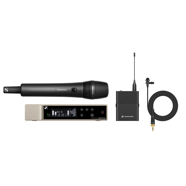 Plan de freq R1-6 (520 - 576MHz) Comprend : émetteur de poche EW-D SK, micro cravate ME2 (omni), émetteur main avec capsule 835, récepteur rackable EW-D EM, kit de rackage, bloc secteur NT 12-5 CW, jeu de piles AA.