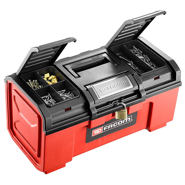 BP.C24NPB Loquet ouverture d'une main et fermeture automatique par clapet - Possibilité de verrouillage par cadenas (non fourni) - 2 compartiments de rangement sur le couvercle - Dim : 595mm x 266mm x 236mm