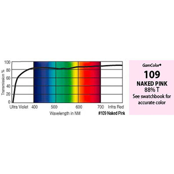 Filtre gélatine GAMCOLOR 109 effet Naked Pink - Feuille 65 x 61cm