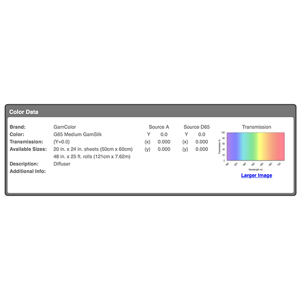 Filtre gélatine GAMCOLOR 65 effet Medium Gam Silk - Feuille 65 x 61cm