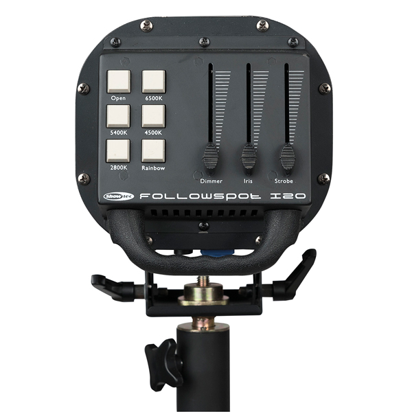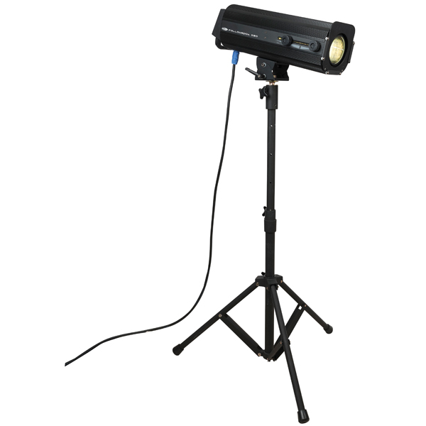 Livré avec son pied 3 faders : Dimmer, Iris, Shutter - Rendu lumineux : 27500lx à 3m 8° - Temp. De couleur : 2800K, 4500K, 5400K ou 6500K - Dimensions : 550 x 250 x 230mm