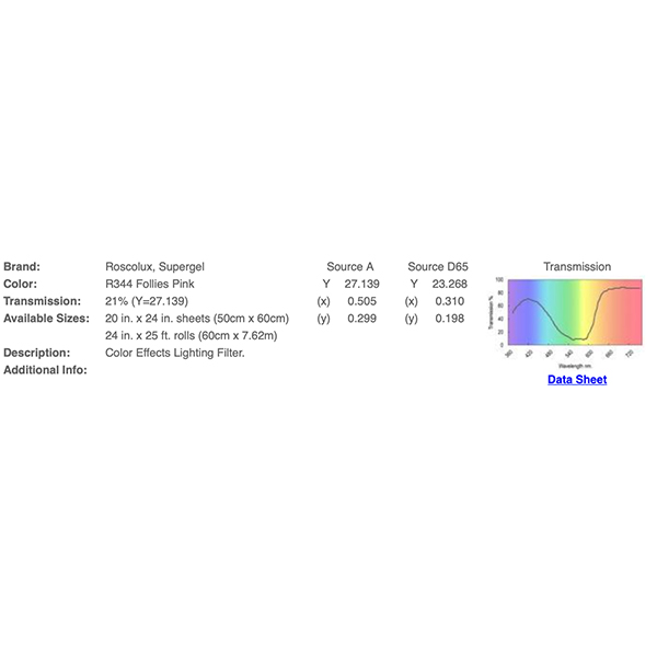 Filtre gélatine ROSCO Supergel 344 effet Follies Pink - Feuille