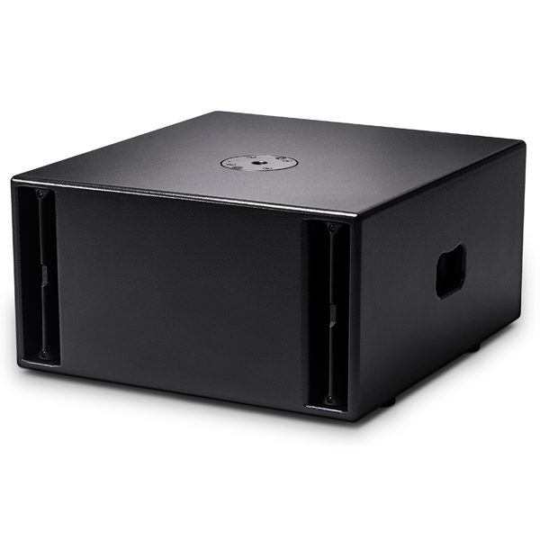 Poignées de transport et insert M20 Réponse en fréq : 43Hz - 130Hz (-3dB). Sensibilité 1W @ 1m : 97 dB. Max SPL : 125 dB. Amplification recommandée : 400 à 650W / 4 Ohms