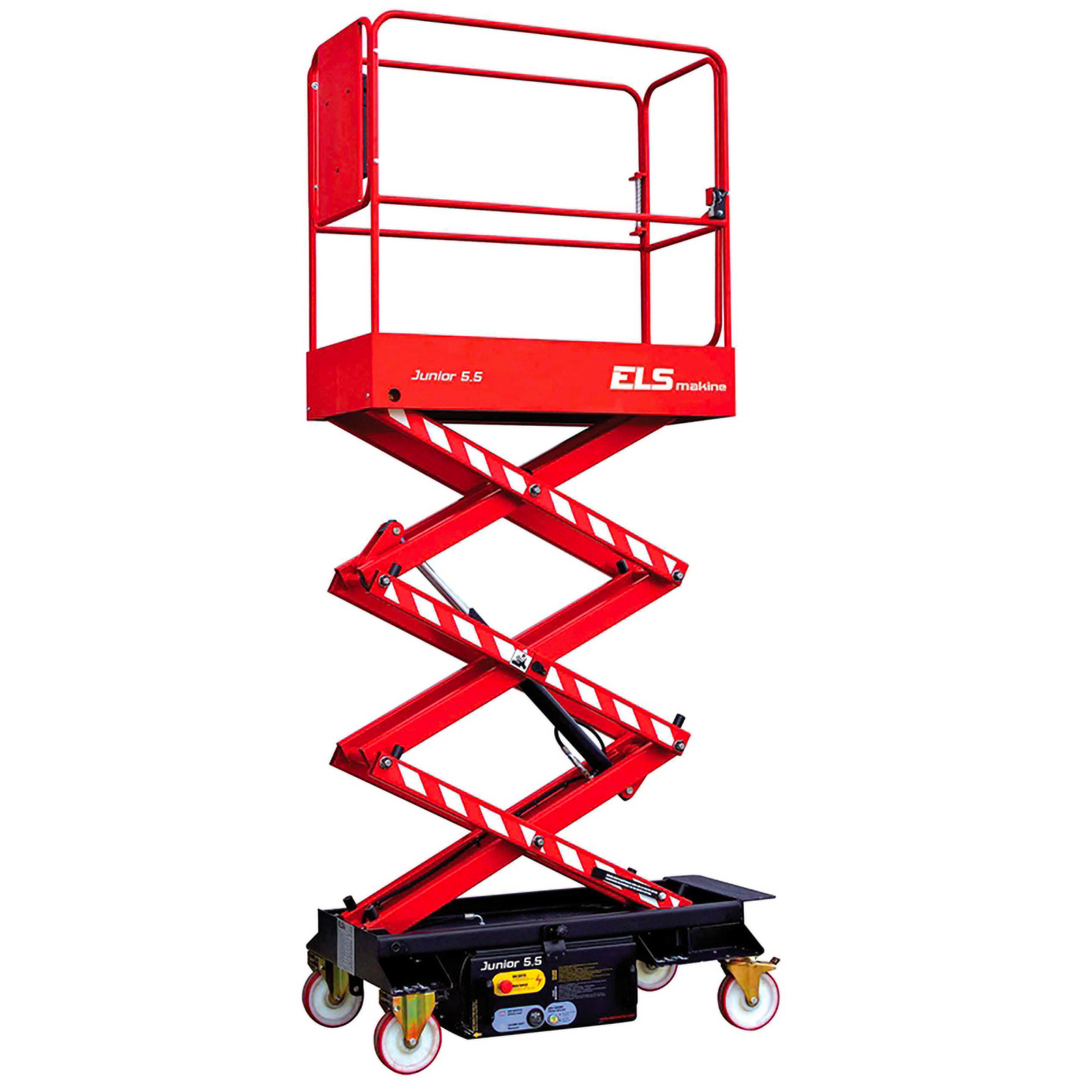 Version sur batterie 12V Charge max : 240kg. Pas de déport de panier. Roues avec freins, nacelle sans stabilisateur. Machine vérifiée en France avant livraison et première utilisation, prête à l'emploi.