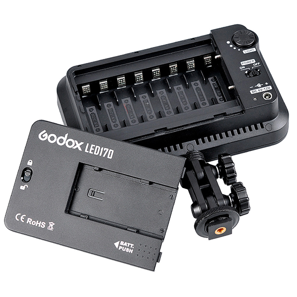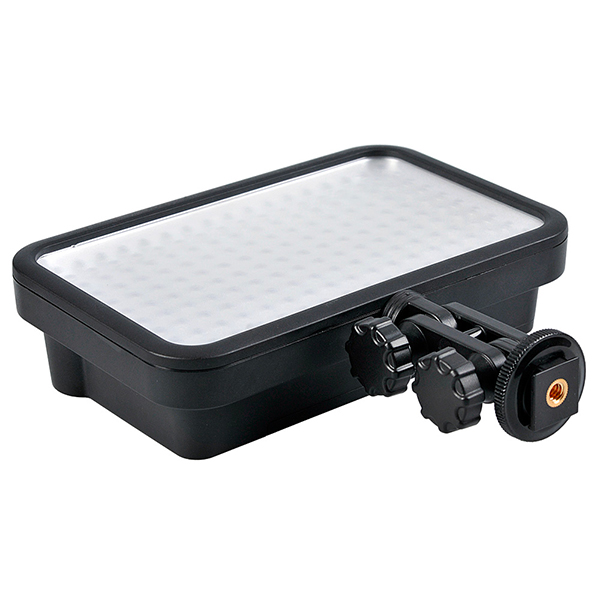 2700lx à 50 cm-Dim.: 172x109x42mm Mini rotule 1 axe, monture batterie type ''SONY L'' ou 8 LR06 AA - Livré sans piles, sans batterie et sans chargeur - Mini panneau Led