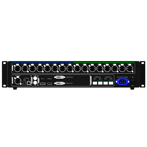 Ne nécessite pas de PC Entrées : DisplayPort 1.2, HDMI 2.0 et DVI Dual Link - Résolution max. : 3840×2160@(60) Hz - Sorties : 16 x RJ45 (Gigabit Ethernet) et 4 x Optique 10G