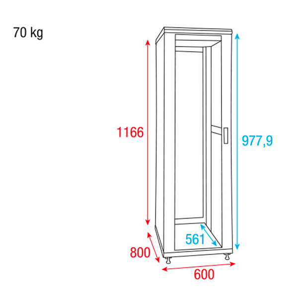 Dimensions extérieures (Profondeur x Largeur x Hauteur) : 800 x 600 x 1166 mm