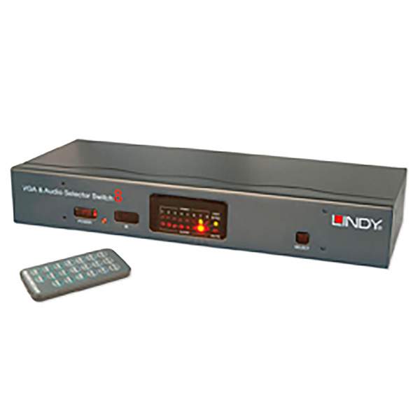 Entrées : 8 VGA + 8Audio stéréo Minijack 3,5mm - Sorties : 1 VGA + 1 Audio stéréo Minijack 3,5mm - Résolution : jusqu'au 2048 x 1536