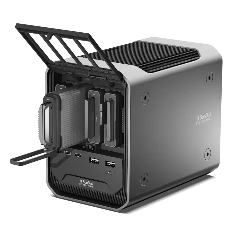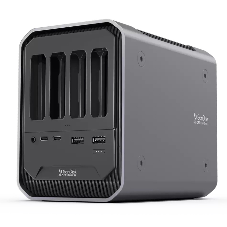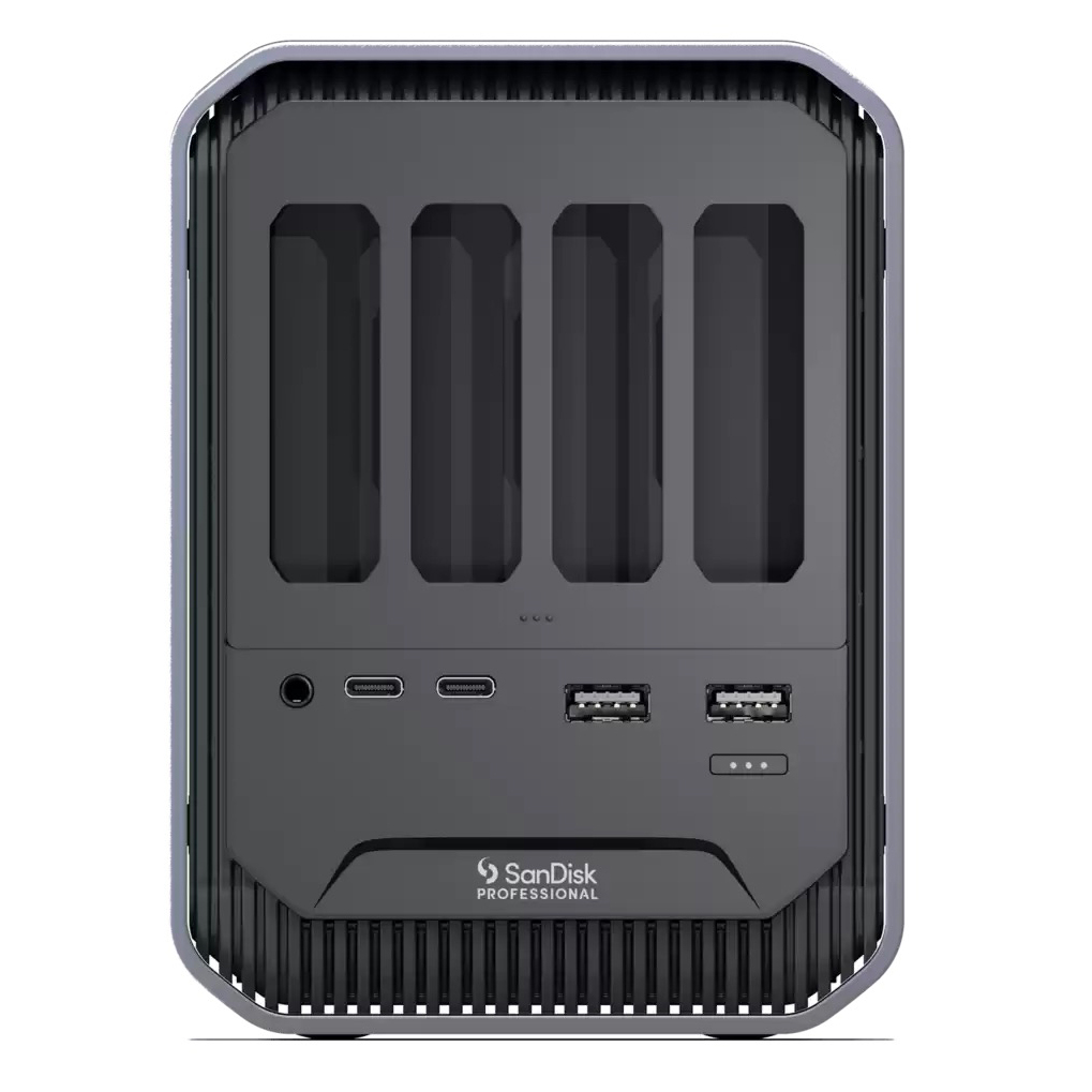 Interface Thunderbolt 3 / USB-C Permet d'accueillir de 1 à 4 lecteurs ou modules, cartes mémoire (SD, MicroSD, Compact Flash, XQD, Cfast ou Disque dur SSD)