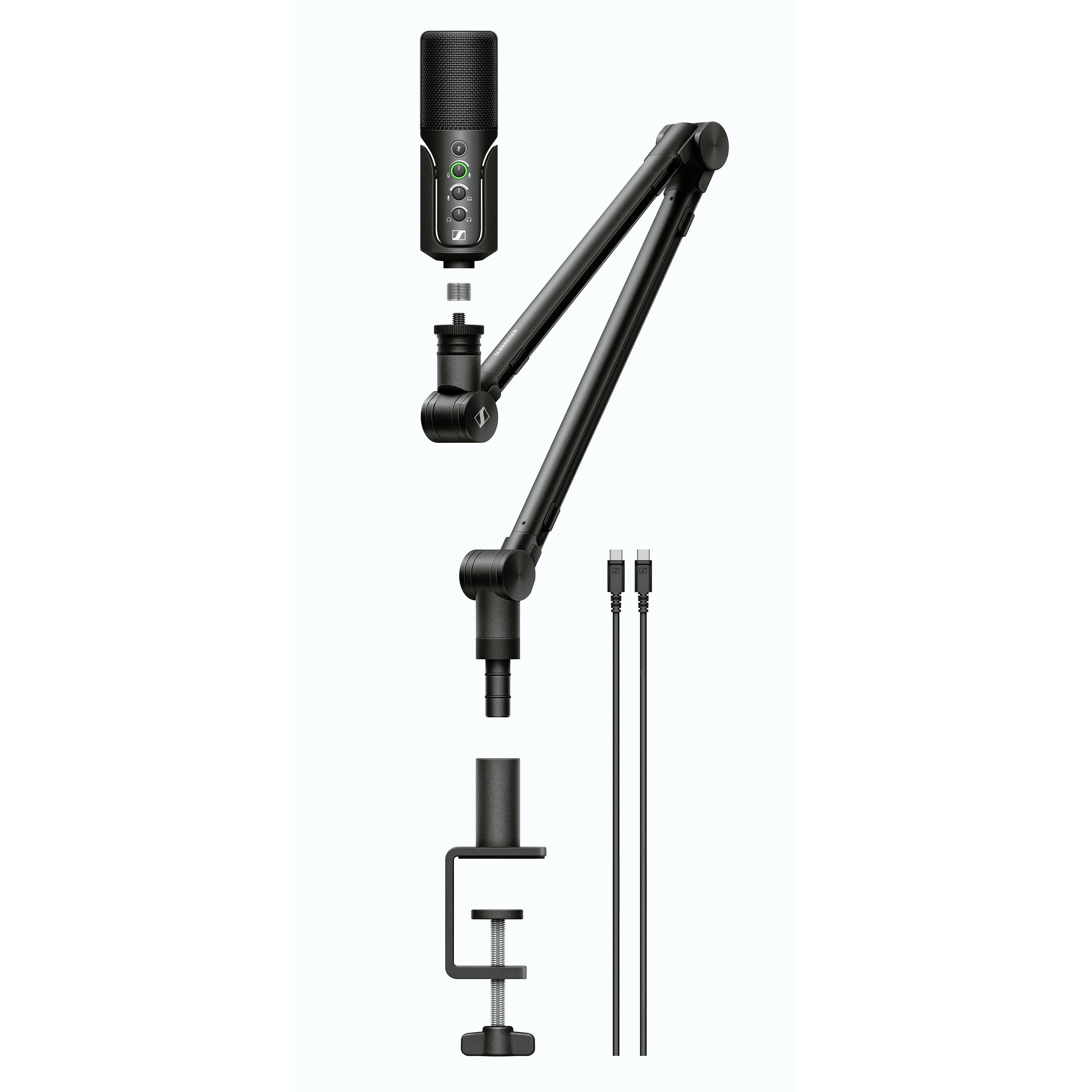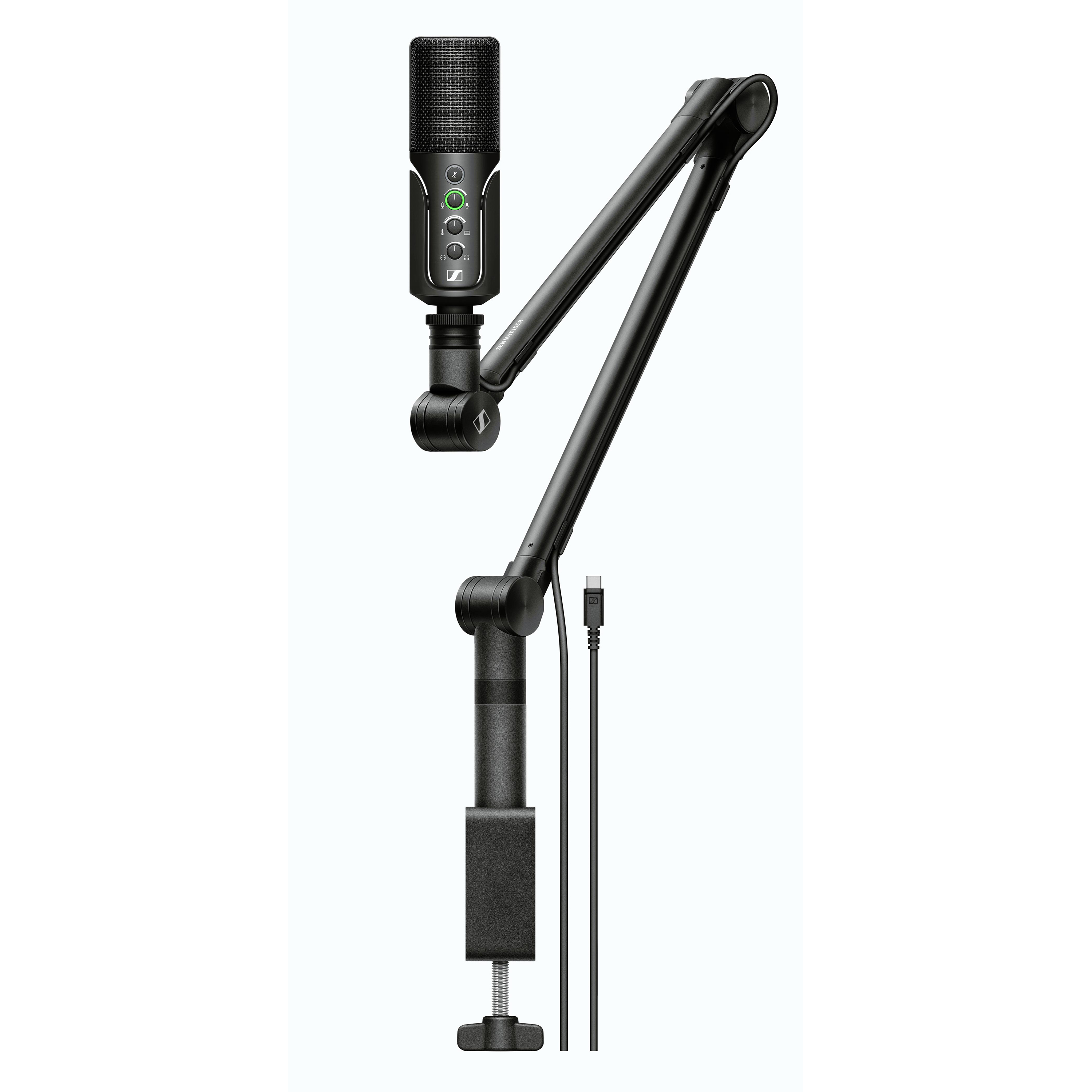 La pack comprend : le micro, le bras articulé, un câble USB-C de 3m, un étui.
