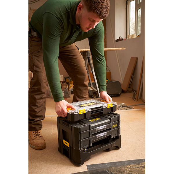 MOBILE : Transport facile à l’aide de la poignée – Possibilité de transporter plusieurs coffrets grâce aux attaches.