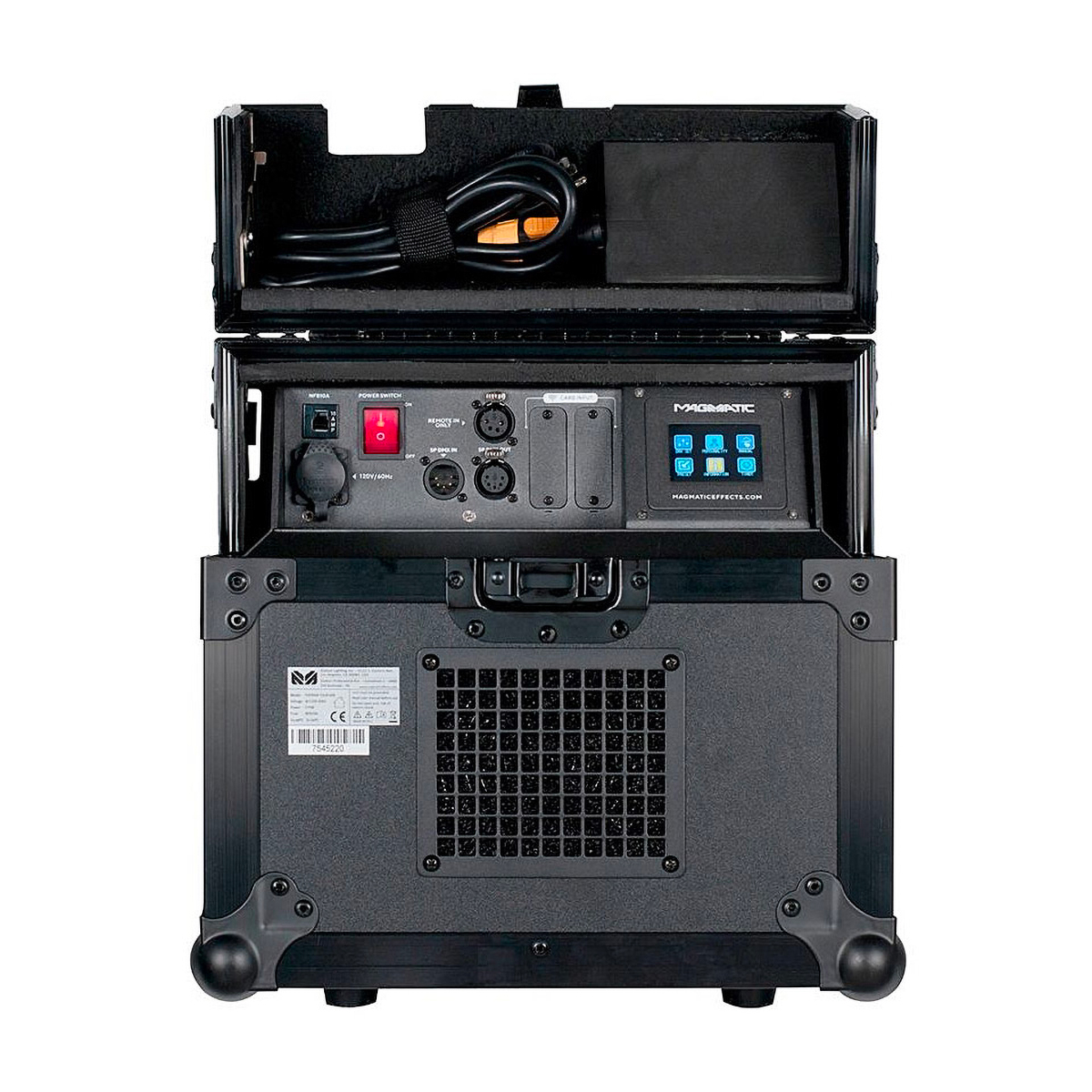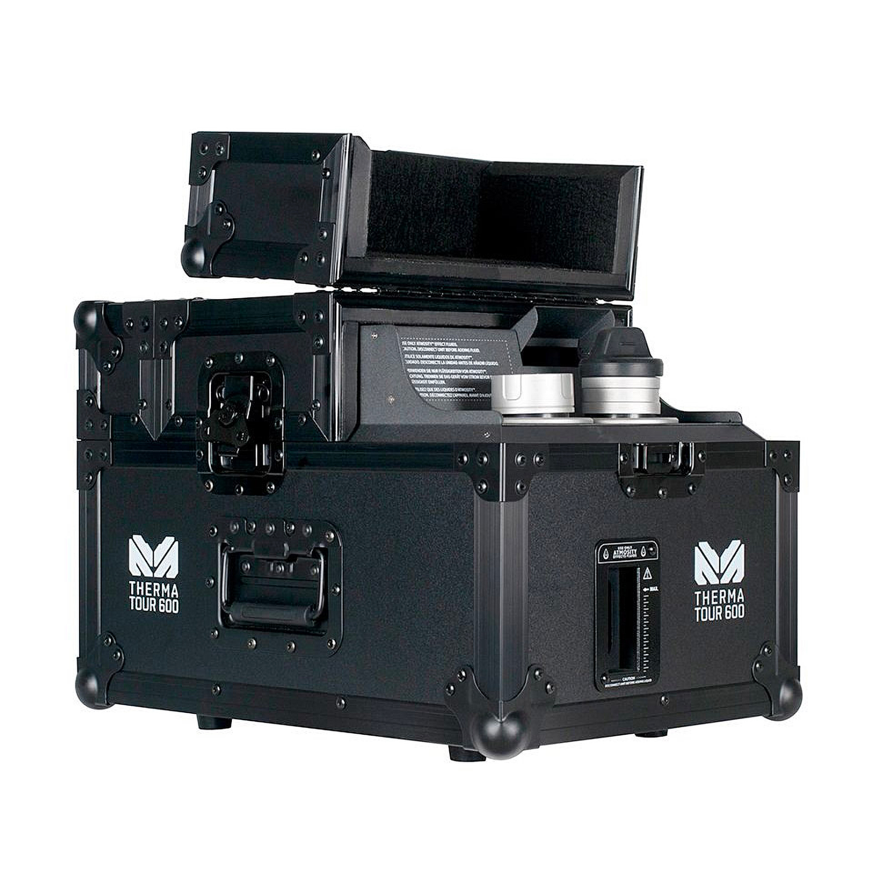 DMX / RDM, jusqu'à 3 canaux DMX. Temps de chauffe : instantané. Capacité réservoir : 2,5L. Consommation : 1ml/min.