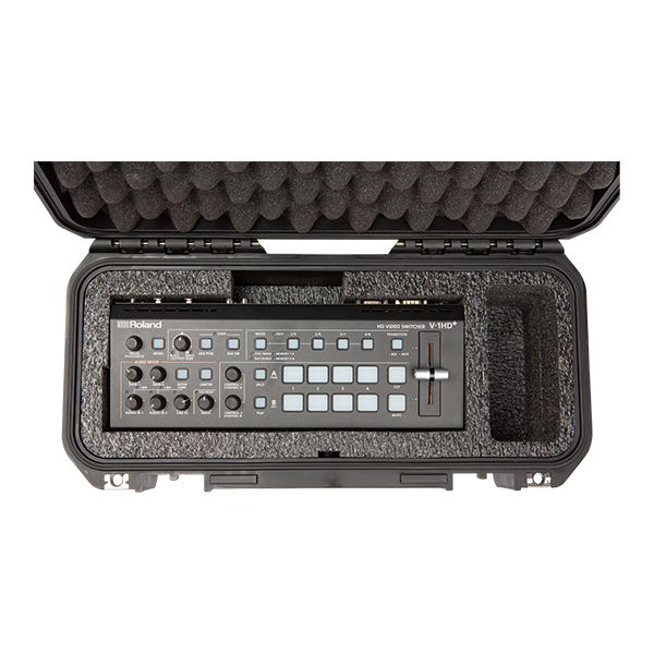 Le 3i-1706-6V1 a été développé spécifiquement pour le Roland V-1HD+ Switcher. Il est doté d'une mousse prédécoupée dense pour maintenir le commutateur en place, avec une encoche pour un retrait facile. Il y a aussi deux découpes pour les accessoires comme l'alimentation ou les petits câbles. La découpe sous le mélangeur mesure 10,625 x 2,875 x 2,25, tandis que la découpe latérale mesure 5,5 x 2,5 x 4,25.