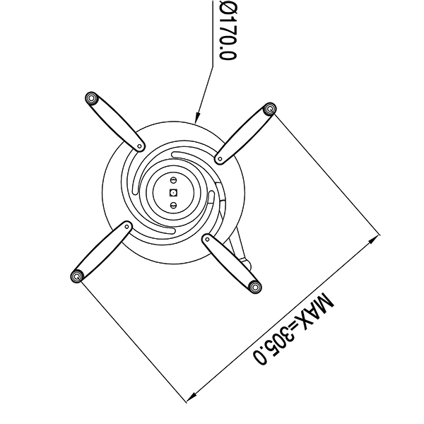 Embout mâle 16mm Entraxe maximum : 305mm - Charge max. : 10kg - Hauteur totale : 114mm