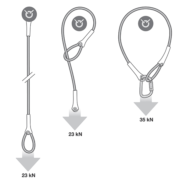 WIRE STROP est une élingue d'amarrage en acier galvanisé de 6,5 mm de diamètre avec deux extrémités de tailles différentes. Elle offre plusieurs configurations pour installer un amarrage : directement sur un ancrage ou autour d'une structure adaptée. Grâce à la gaine plastique, le connecteur est maintenu dans la bonne position et facilite le mousquetonnage. Elle est disponible en cinq longueurs (50, 100, 150, 200 et 300 cm).