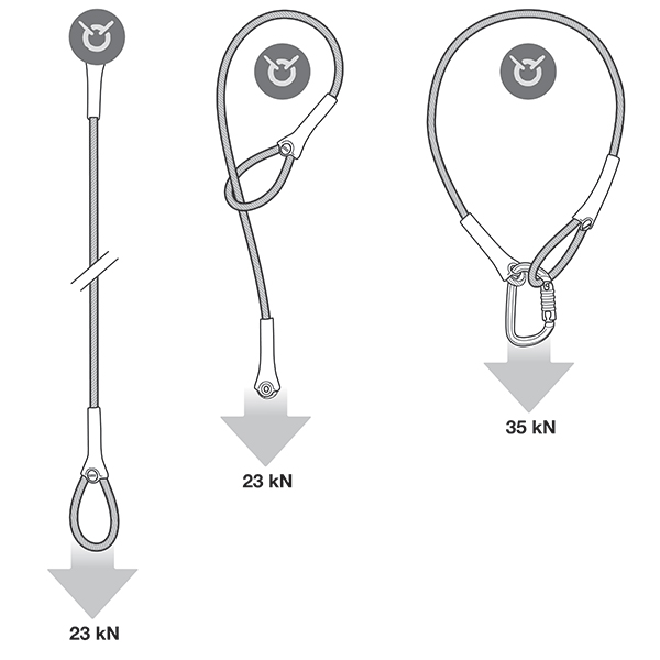 WIRE STROP est une élingue d'amarrage en acier galvanisé de 6,5 mm de diamètre avec deux extrémités de tailles différentes. Elle offre plusieurs configurations pour installer un amarrage : directement sur un ancrage ou autour d'une structure adaptée. Grâce à la gaine plastique, le connecteur est maintenu dans la bonne position et facilite le mousquetonnage. Elle est disponible en cinq longueurs (50, 100, 150, 200 et 300 cm).